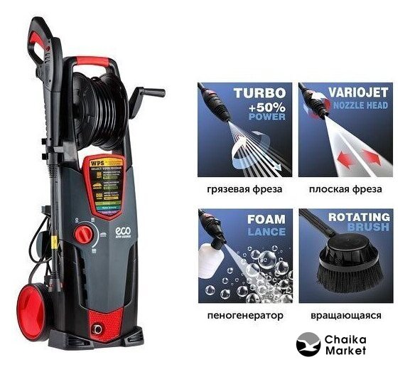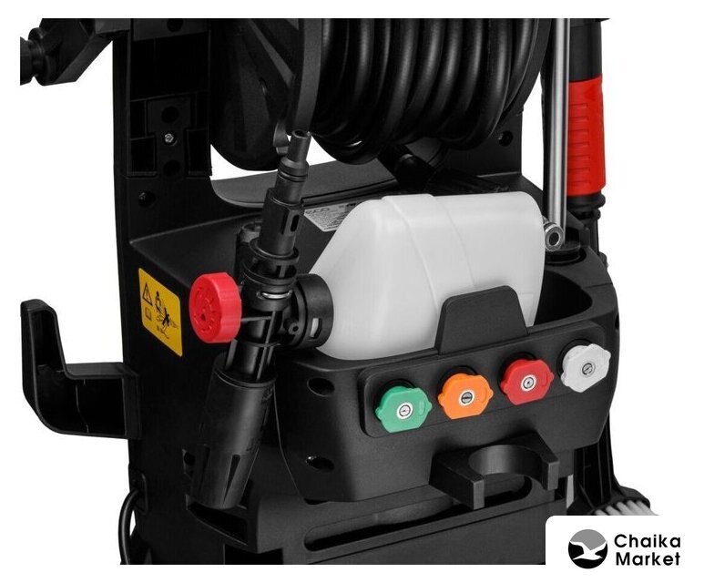| Комплектация | Очиститель высокого давления - 1 шт.Моечный пистолет - 1 шт.Шланг высокого давления 8 м - 1 шт.Удлинительная трубка - 1 шт.Веерная фреза (0°, 15°, 25° и 40°) - 4 шт.Роторная (грязевая) фреза - 1 шт.Пеногенератор - 1 шт.Моющая щетка - 1 шт.Мини-фильтр тонкой очистки 1/2" - 1 шт.Переходник HPC 1/2" - 1 шт.Инструмент для чистки форсунки - 1 шт.Держатель для аксессуаров - 1 шт.Держателя кабеля - 1 шт.Держатель моечного пистолета (верхний) - 1 шт.Держатель моечного пистолета (нижний) - 1 шт.Ручка для транспортировки - 1 шт.Диск катушки - 2 шт.Рукоятка катушки - 1 шт.Кронштейн катушки - 2 шт.Колесо - 2 шт.Винт 4*16 мм - 12 шт.Винт 4*22 мм - 4 шт.Руководство по эксплуатации - 1 шт.Упаковка |