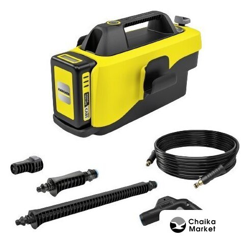 Комплектация | - Насадка с веерным соплом- Встроенный фильтр тонкой очистки воды- Адаптер подключения к садовому шлангу 3/4"- Аккумулятор 2.5 Ач- Зарядное устройство |