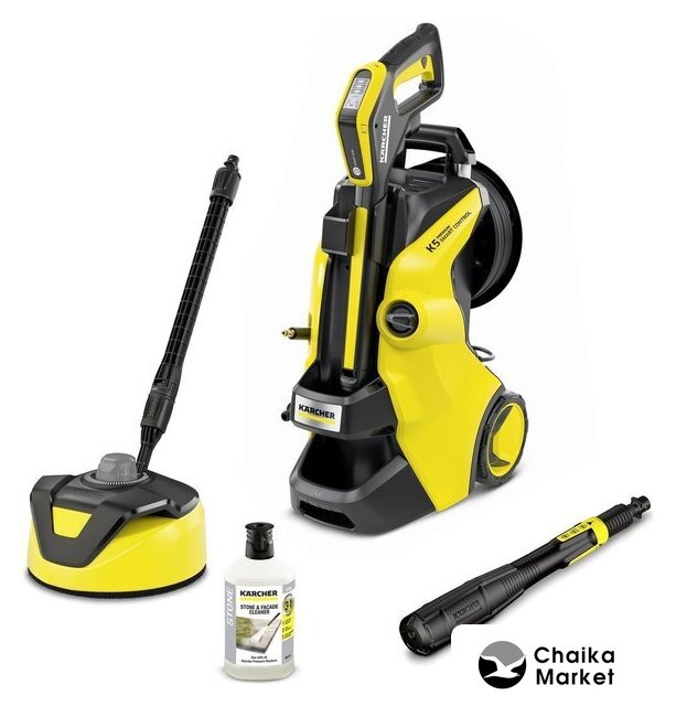 Комплектация | - Приспособление для очистки поверхностей T 5;- Чистящее средство 1 л средство для чистки камней 3-в-1;- Пистолет высокого давления, G 180 Q Smart Control;- Струйная трубка Multi Jet 3-в-1;- Катушка для шланга высокого давления;- Шланг высокого давления, 10 м;- Мягкий мешок для аксессуаров;- Адаптер подключения к садовому шлангу 3/4". |
