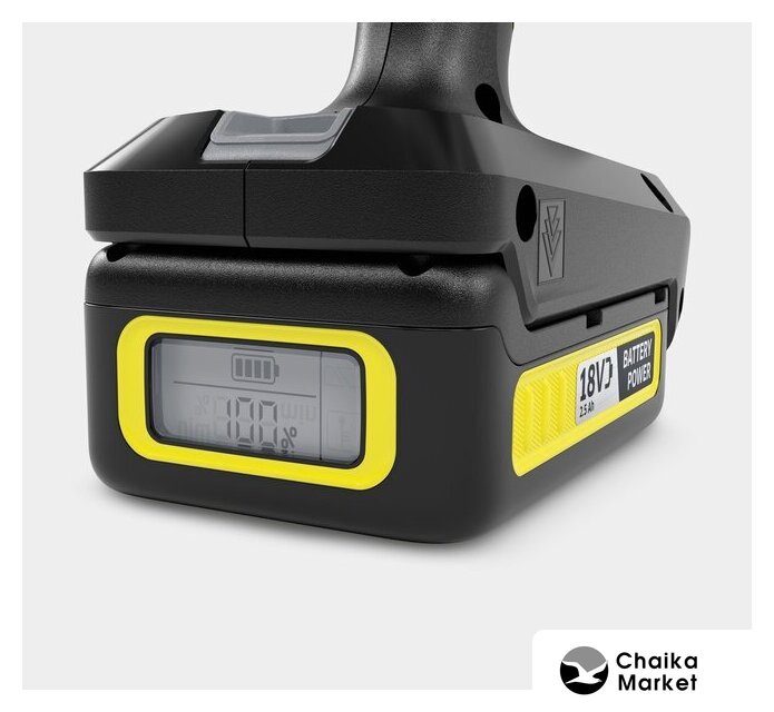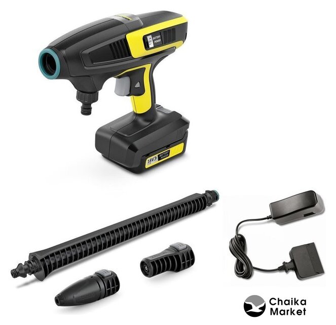 Комплектация | - Аккумулятор, Аккумулятор Battery Power 18 В / 2,5 Ач (1 шт.);- Зарядное устройство, Станд. зарядное устройство Battery Power 18 В (1 шт.);- Встроенный фильтр для воды;- Адаптер для садового шланга A3/4";- Веерное сопло QC Handheld;- Грязевая фреза QC Handheld;- 1-позиционная струйная трубка. |