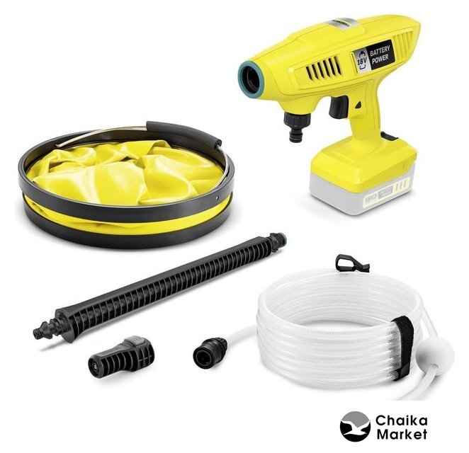 Комплектация | - Встроенный фильтр для воды;- Адаптер для садового шланга A3/4";- Веерное сопло QC Handheld;- складной бак для воды;- 1-позиционная струйная трубка.Вариант, Аккумулятор и зарядное устройство не входят в комплект поставки |