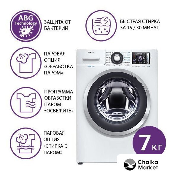 отдельностоящая, стиральная машина, с паром, загрузка до 6 кг, отжим 1200 об/мин, глубина 44 см, энергопотребление A+++, 15 программ