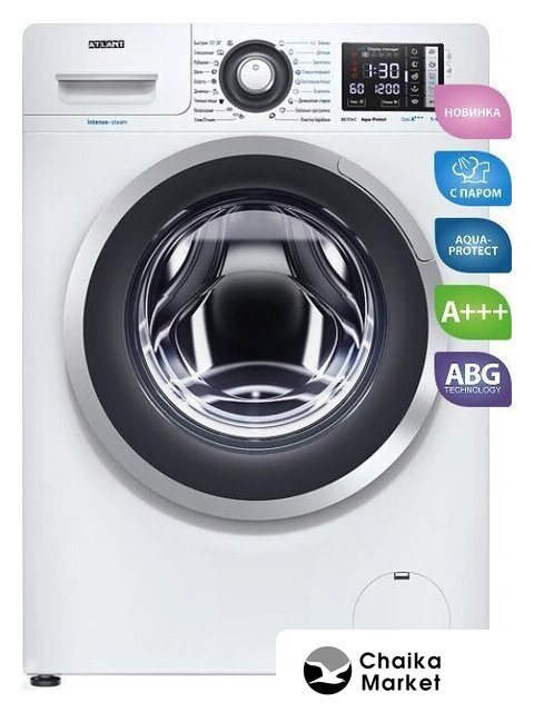 отдельностоящая, стиральная машина, с паром, отжим 1400 об/мин, глубина 52.6 см (с люком 54.9 см), энергопотребление A+++, Aquastop, 18 программ, ABG Technology (ATLANT)