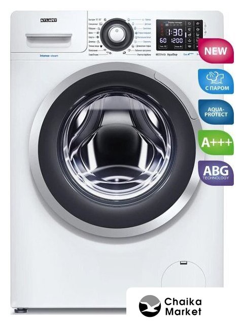 отдельностоящая, стиральная машина, с паром, загрузка до 7 кг, отжим 1200 об/мин, глубина 48.1 см (с люком 54.9 см), энергопотребление A+++, Aquastop, 18 программ, ABG Technology (ATLANT)