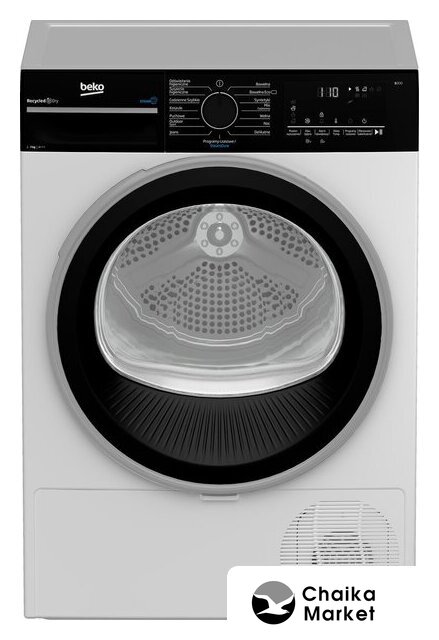 отдельностоящая, сушильная машина, сушка: конденсация с тепловым насосом, загрузка до 7 кг, энергопотребление A++, 16 программ