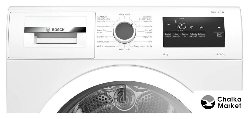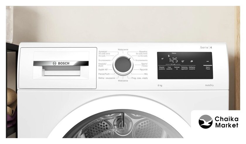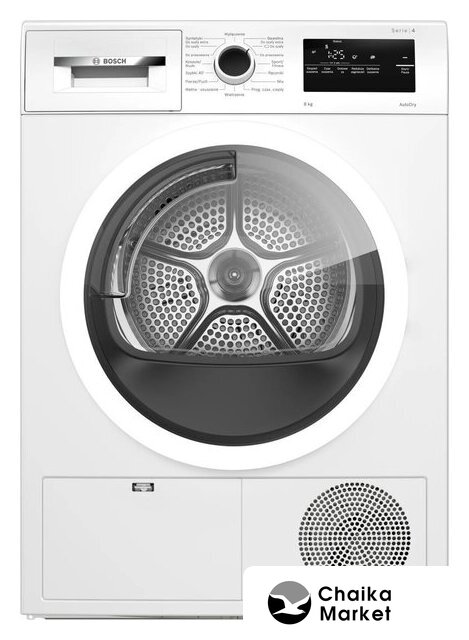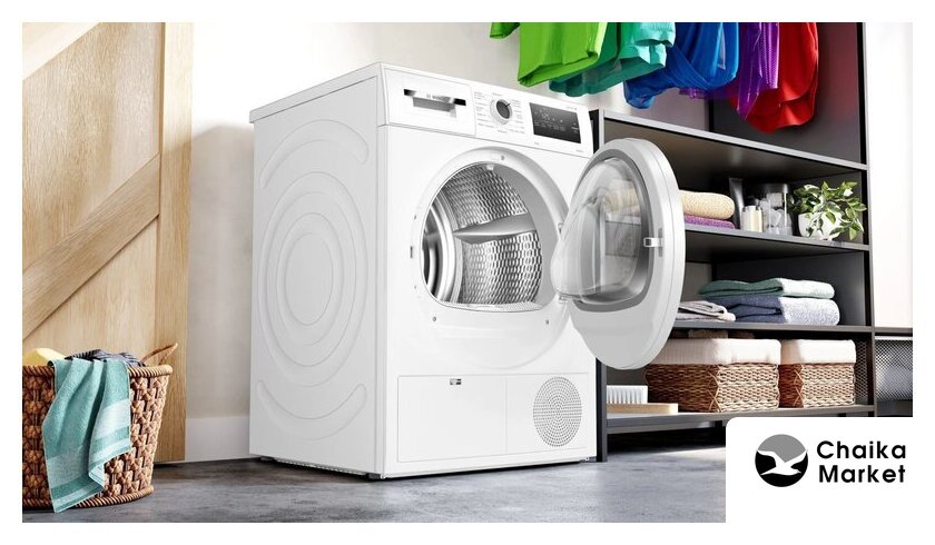 отдельностоящая, сушильная машина, сушка: конденсация с тепловым насосом, с паром, загрузка до 8 кг, глубина 62.5 см, энергопотребление A, 14 программ