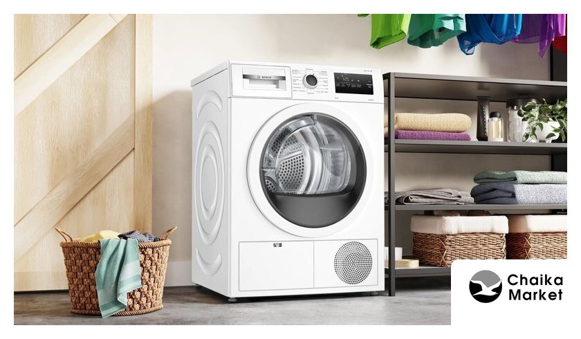 отдельностоящая, сушильная машина, сушка: конденсация с тепловым насосом, загрузка до 9 кг, глубина 58.5 см, энергопотребление A++, 15 программ