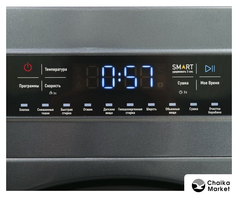 | Все программы | ХлопокСмешанные тканиБыстрая стиркаОтжимДетские вещиГипоаллергенная стиркаШерстьОбъемные вещиСушкаОчистка барабанаSMART |