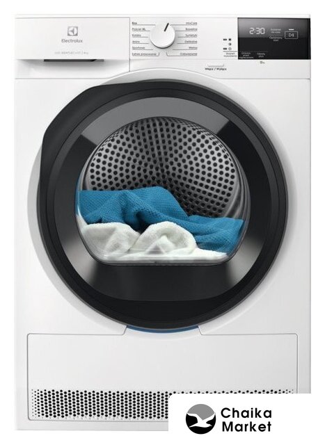 отдельностоящая, сушильная машина, сушка: конденсация с тепловым насосом, загрузка до 9 кг, глубина 61.5 см (с люком 66 см), энергопотребление A+++, прямой привод, 14 программ