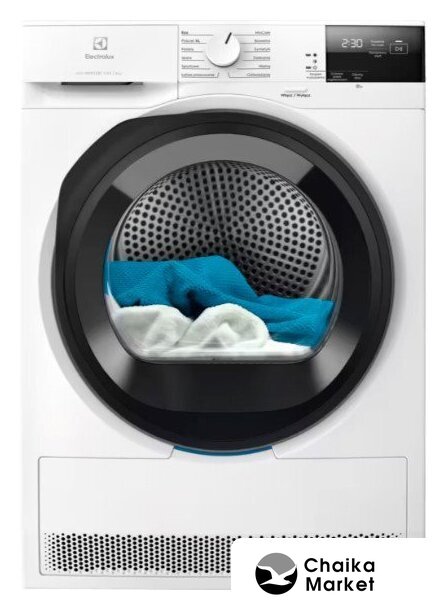 отдельностоящая, сушильная машина, сушка: конденсация с тепловым насосом, загрузка до 8 кг, глубина 61.3 см (с люком 66.5 см), энергопотребление A++, 16 программ