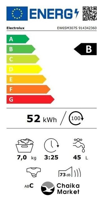 | Расход электроэнергии за цикл | 0.52 кВт·ч |