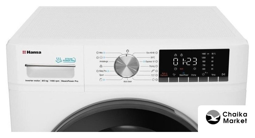 отдельностоящая, стирально-сушильная машина, с паром, загрузка до 8 кг, отжим 1200 об/мин, глубина 43 см (с люком 52 см), энергопотребление A+++, прямой привод, 11 программ