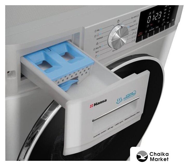 отдельностоящая, стирально-сушильная машина, с паром, загрузка до 8 кг, отжим 1400 об/мин, глубина 43 см (с люком 52 см), энергопотребление B, 10 программ