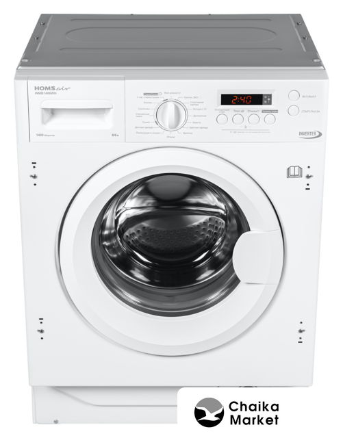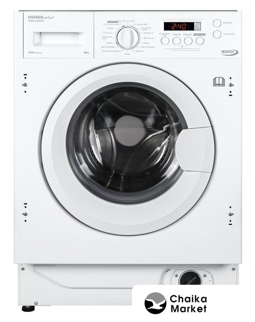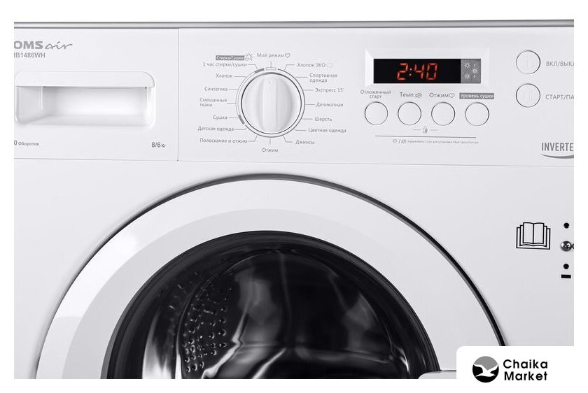 встраиваемая, стирально-сушильная машина, загрузка до 8 кг, отжим 1400 об/мин, глубина 53.2 см, энергопотребление A+++, защита от протечек, 16 программ
