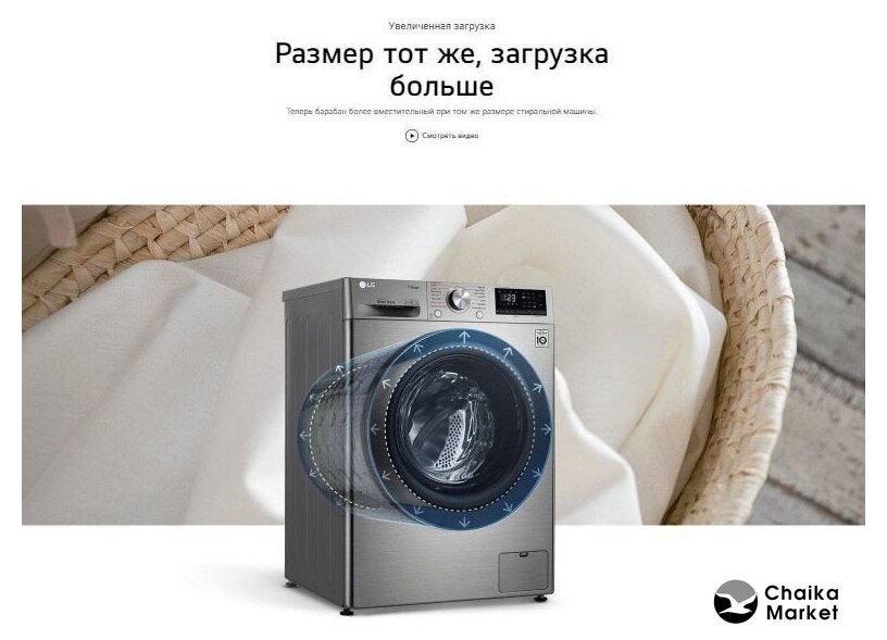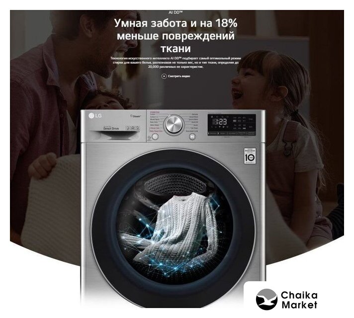 отдельностоящая, стиральная машина, с паром, загрузка до 10.5 кг, отжим 1200 об/мин, глубина 56.5 см, энергопотребление A, прямой привод, 14 программ, AI DD (LG)