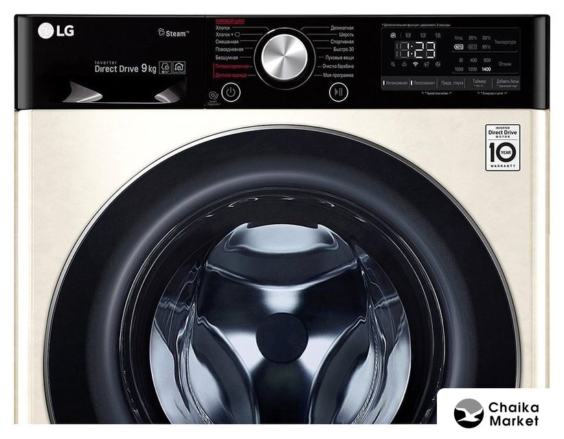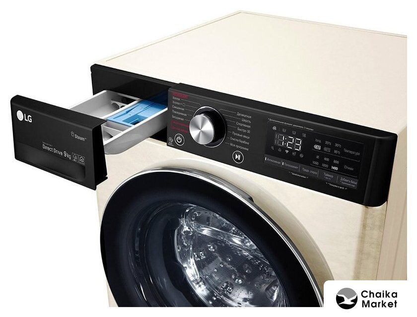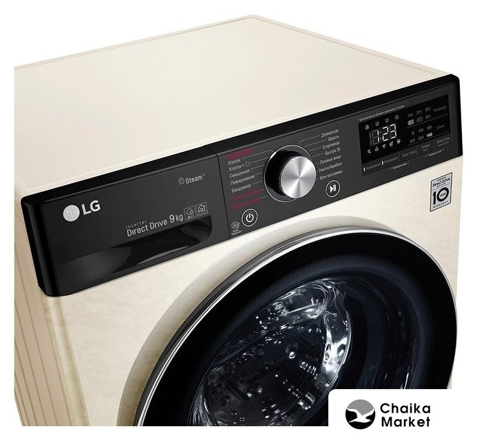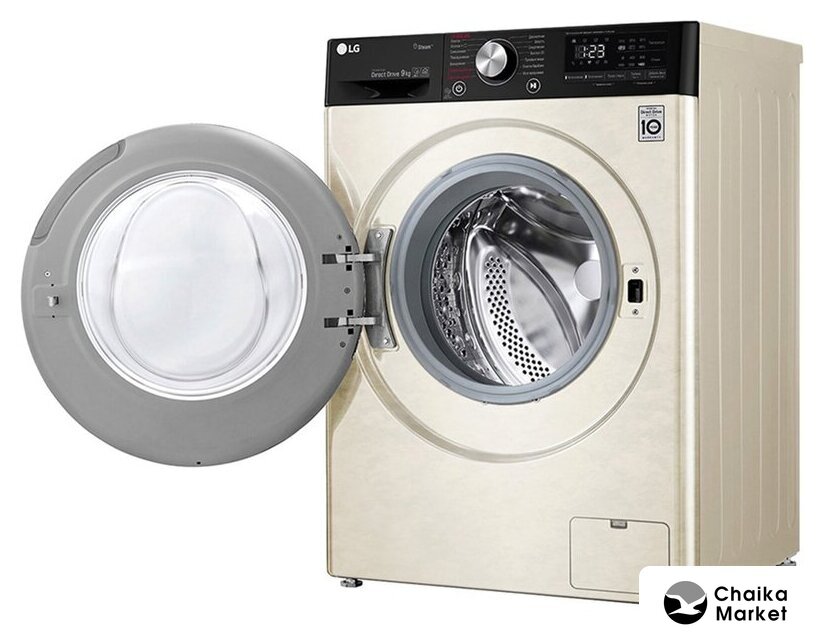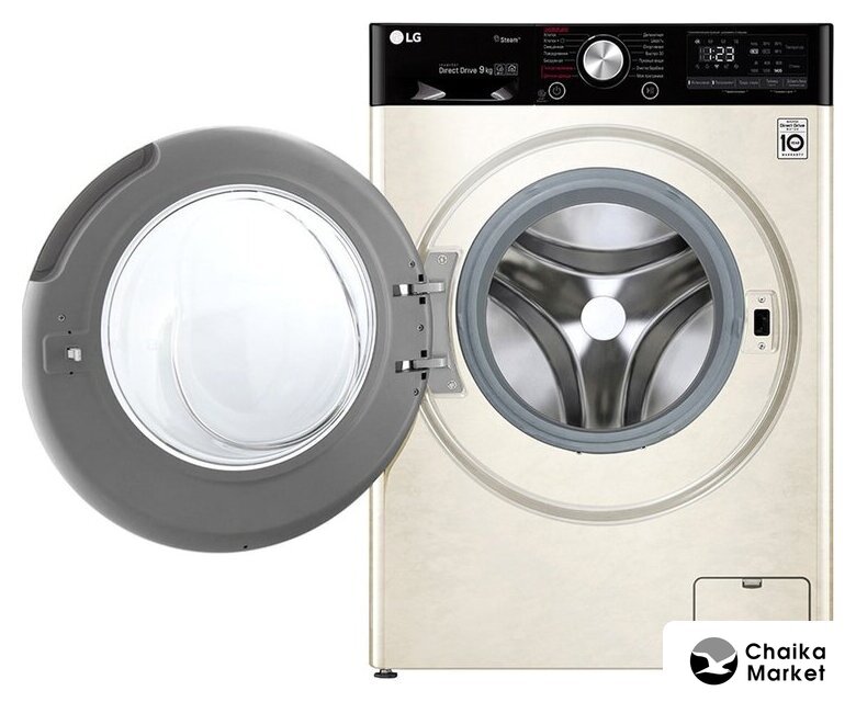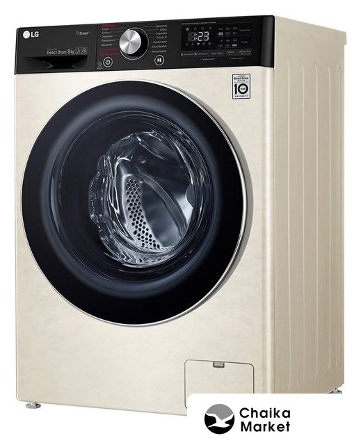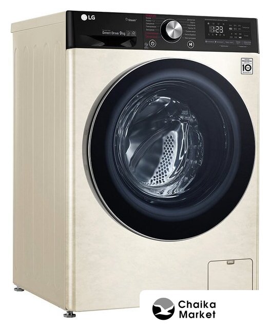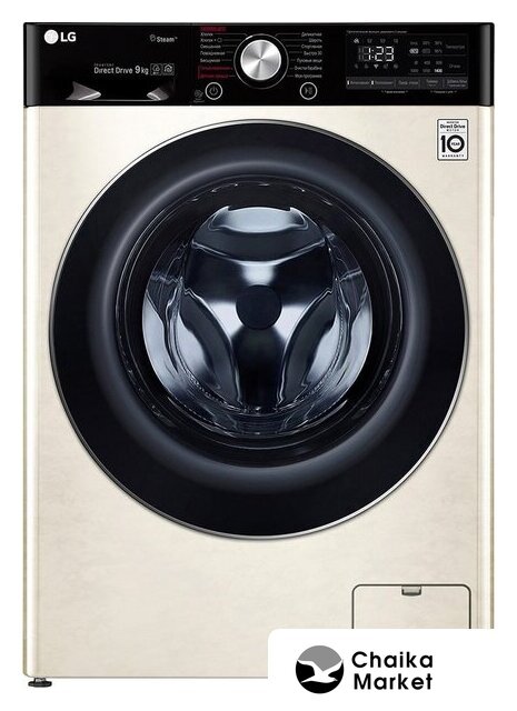 отдельностоящая, стиральная машина, с паром, загрузка до 9 кг, отжим 1200 об/мин, глубина 47.5 см (с люком 53.5 см), прямой привод, 14 программ, AI DD (LG)