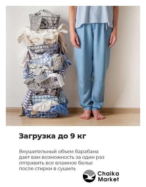 | Максимальная загрузка для сушки | 9 кг |
