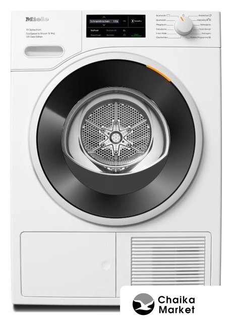 отдельностоящая, сушильная машина, сушка: конденсация с тепловым насосом, с паром, загрузка до 9 кг, глубина 64.3 см, энергопотребление A+++, 12 программ