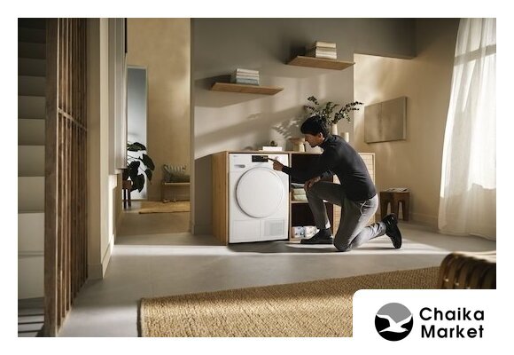 отдельностоящая, сушильная машина, сушка: конденсация с тепловым насосом, с паром, загрузка до 9 кг, глубина 63.8 см (с люком 66.2 см), энергопотребление A+++, 12 программ