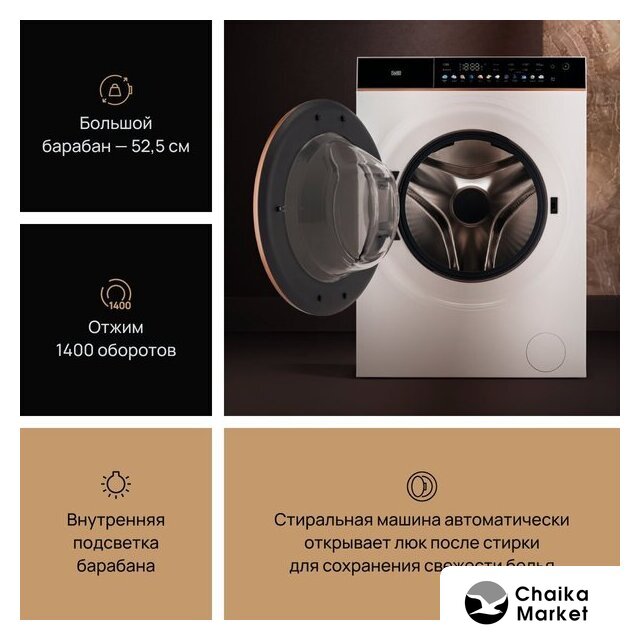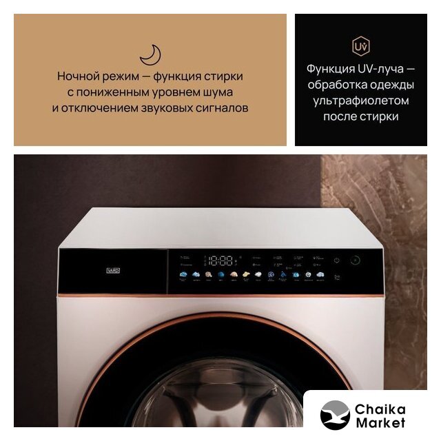 Оригинальные функции | UV-луч — функция стиральной машины, которая активируется в конце постирочного цикла. Проходя через структуру ткани, ультрафиолет меняет структуру потенциально опасных микроорганизмов и предотвращает их дальнейшее размножение.Автооткрывание - при включении функции автооткрывания по завершении цикла люк разблокируется автоматически и приоткроет дверцу, сохраняя свежесть только что постиранного белья. |