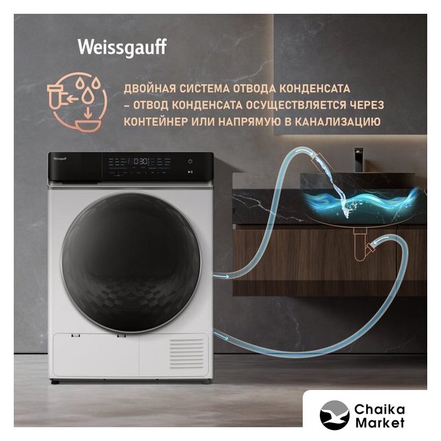 отдельностоящая, сушильная машина, сушка: естественная конденсация, с паром, загрузка до 8 кг, глубина 61.5 см, энергопотребление B, 16 программ