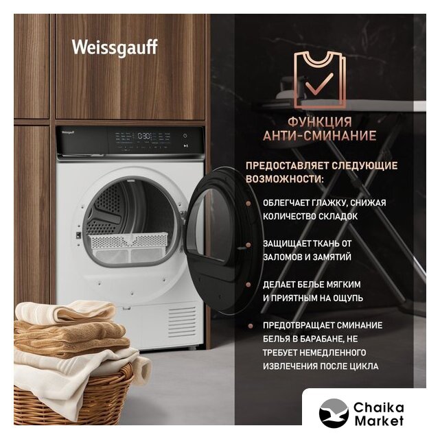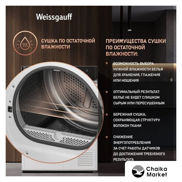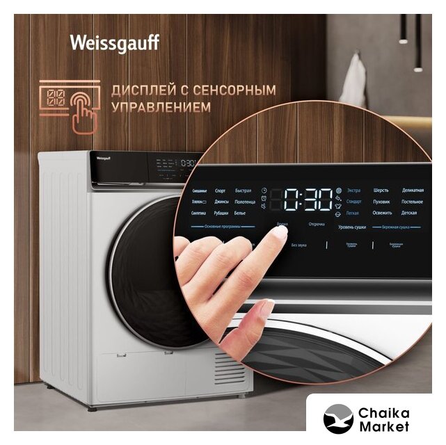 отдельностоящая, сушильная машина, сушка: конденсация с тепловым насосом, загрузка до 8 кг, глубина 65.2 см, энергопотребление A+++, 16 программ