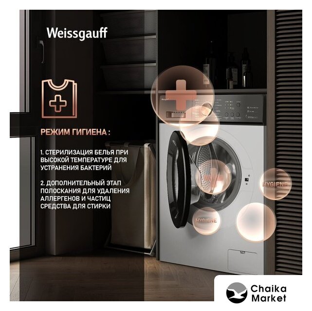 отдельностоящая, стиральная машина, с паром, загрузка до 6.5 кг, отжим 1200 об/мин, глубина 44 см, энергопотребление A, 15 программ