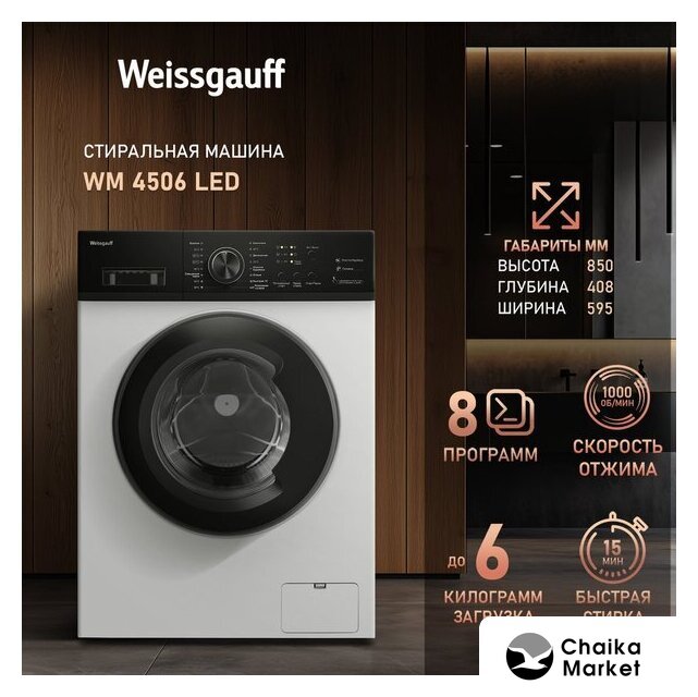 отдельностоящая, стиральная машина, загрузка до 6 кг, отжим 1000 об/мин, глубина 46.8 см, энергопотребление A+++, 15 программ