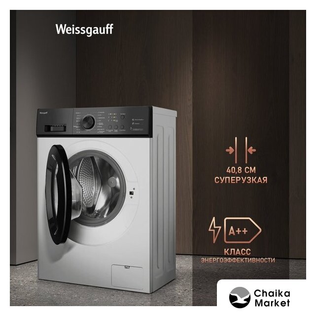 отдельностоящая, стиральная машина, загрузка до 7 кг, отжим 1200 об/мин, глубина 40.6 см (с люком 48.9 см), энергопотребление A++, защита от протечек, Aquastop, 16 программ