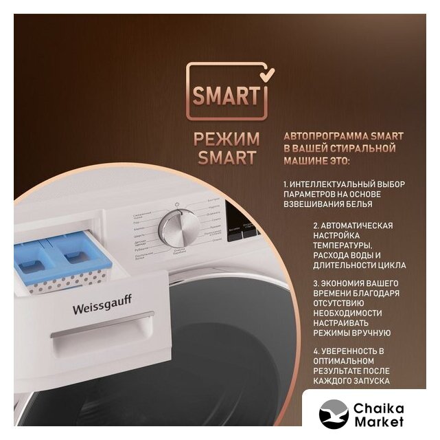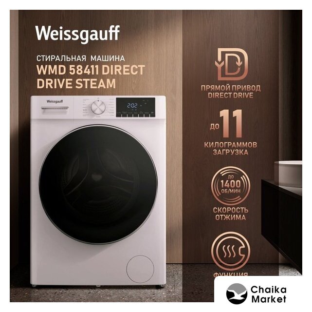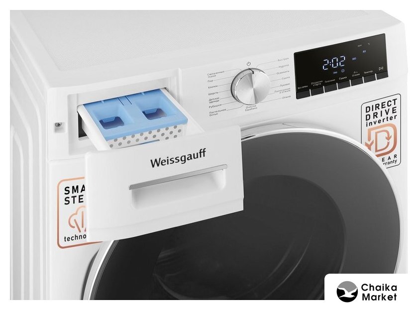 отдельностоящая, стирально-сушильная машина, с паром, загрузка до 10 кг, отжим 1400 об/мин, глубина 48.7 см (с люком 57.7 см), энергопотребление A+++, прямой привод, 11 программ