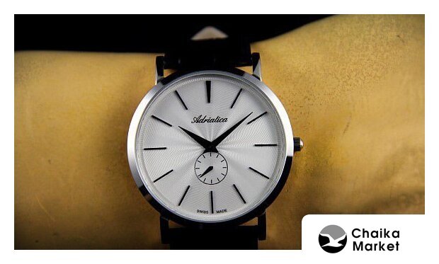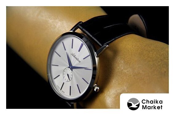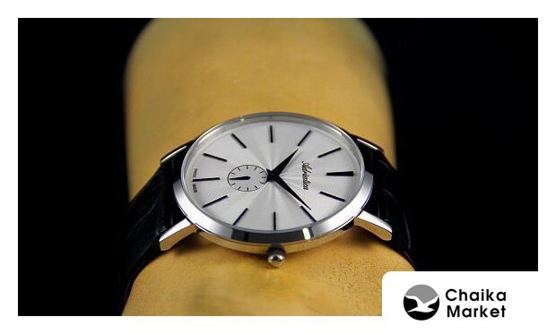 механизм кварцевый, корпус: нержавеющая сталь, 44 мм, минеральное стекло, 50 м, браслет кожаный