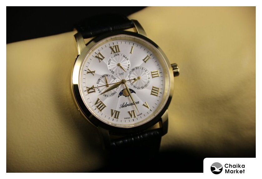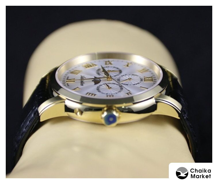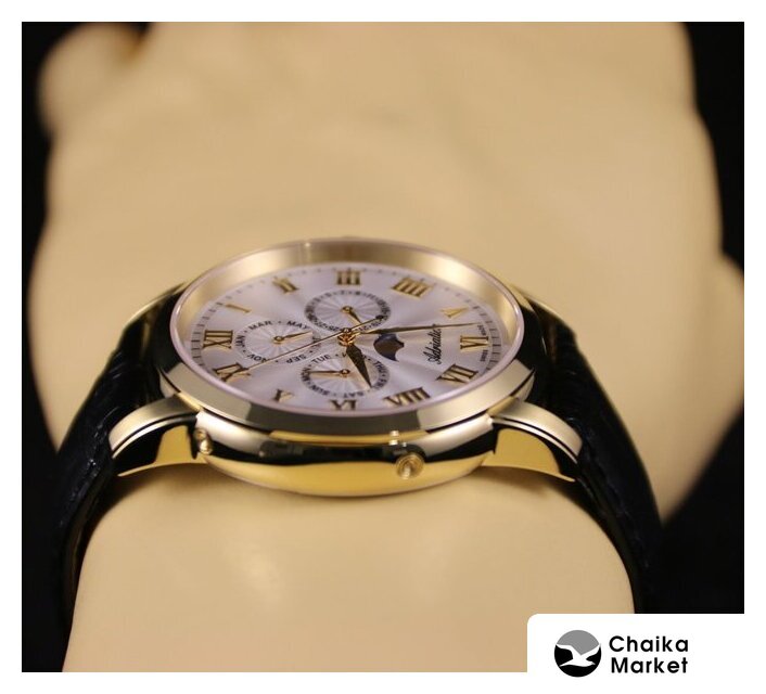 мужские, механизм кварцевый, корпус: нержавеющая сталь, 42 мм, сапфировое стекло, 50 м, браслет кожаный