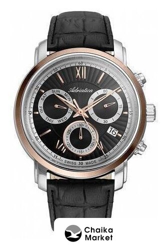 мужские, механизм кварцевый, корпус: нержавеющая сталь, 44 мм, минеральное стекло, 50 м, браслет кожаный