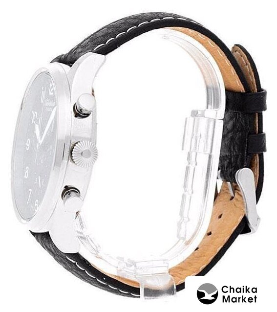 мужские, механизм кварцевый, корпус: нержавеющая сталь, 42 мм, сапфировое стекло, 30 м, браслет кожаный
