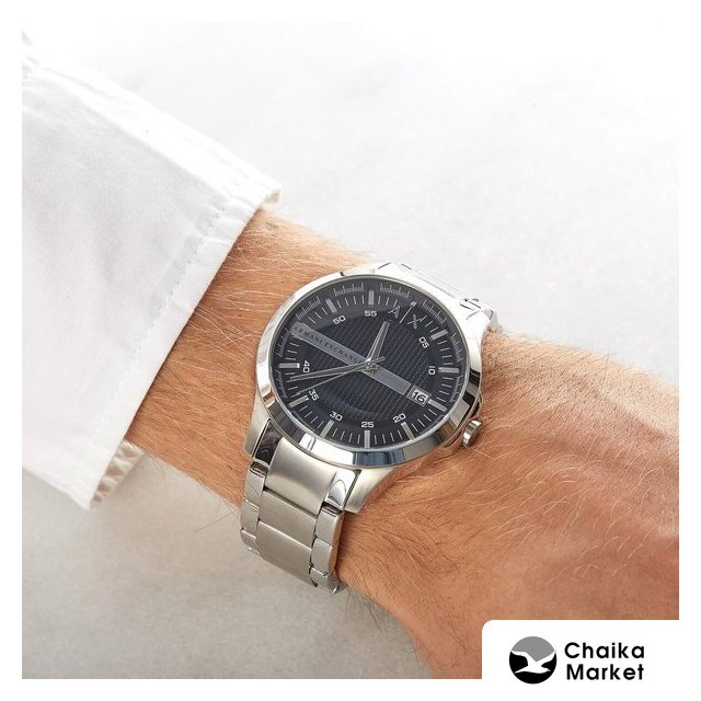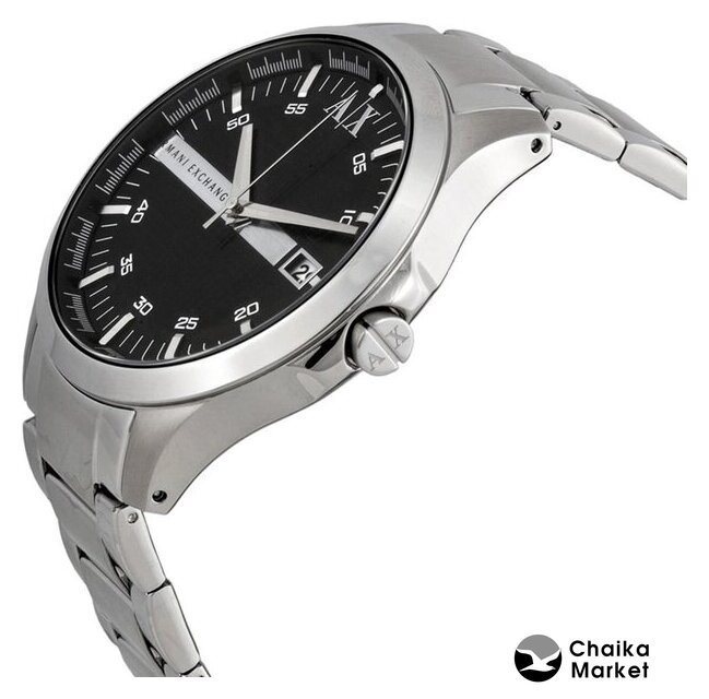 черный корпус, черный циферблат, черный браслет, металлический ремешок