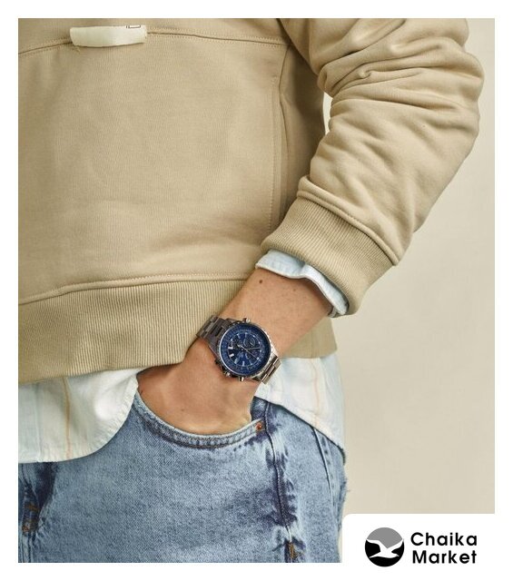 мужские, механизм кварцевый, корпус: нержавеющая сталь, 48.7 мм, минеральное стекло, 100 м, браслет металлический
