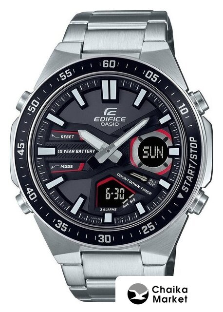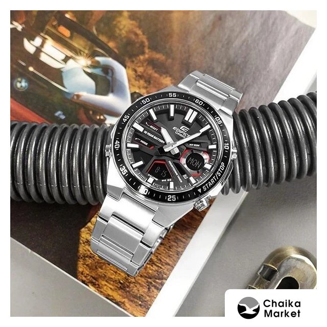 серебристый/синий корпус, синий/черный циферблат, серебристый браслет, металлический ремешок