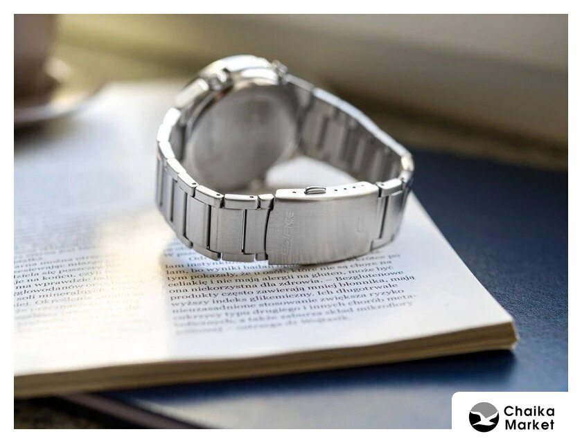 серебристый/черный корпус, черный циферблат, серебристый браслет, металлический ремешок