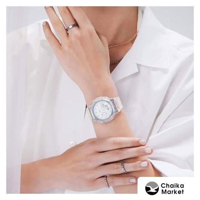 белый корпус, белый циферблат, белый браслет, пластиковый ремешок