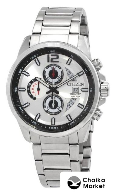 мужские, механизм кварцевый с солнечной батареей, корпус: пластик, 43.5 мм, минеральное стекло, 100 м, браслет металлический