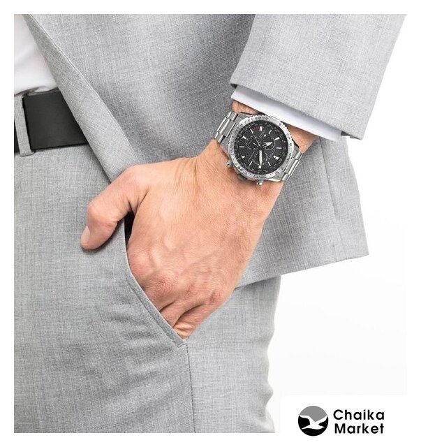 мужские, механизм кварцевый, корпус: нержавеющая сталь, 45.5 мм, минеральное стекло, 200 м, браслет металлический