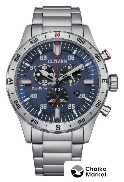 механизм кварцевый с солнечной батареей, корпус: нержавеющая сталь, 46.1 мм, сапфировое стекло, 100 м, браслет металлический