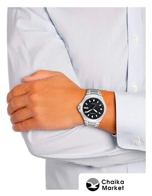 мужские, механизм электронный с солнечной батареей, корпус: пластик, 51.7 мм, минеральное стекло, 100 м, браслет металлический