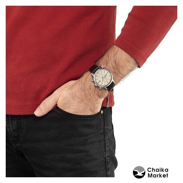 механизм кварцевый, корпус: нержавеющая сталь, 42 мм, сапфировое стекло, 30 м, браслет кожаный