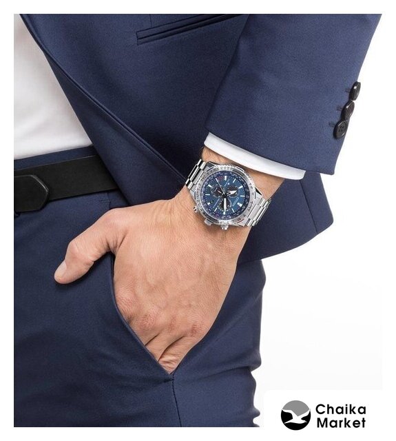 мужские, механизм кварцевый с солнечной батареей, корпус: нержавеющая сталь, 44.4 мм, минеральное стекло, 200 м, браслет металлический