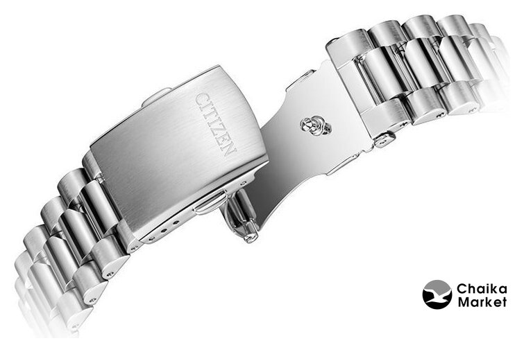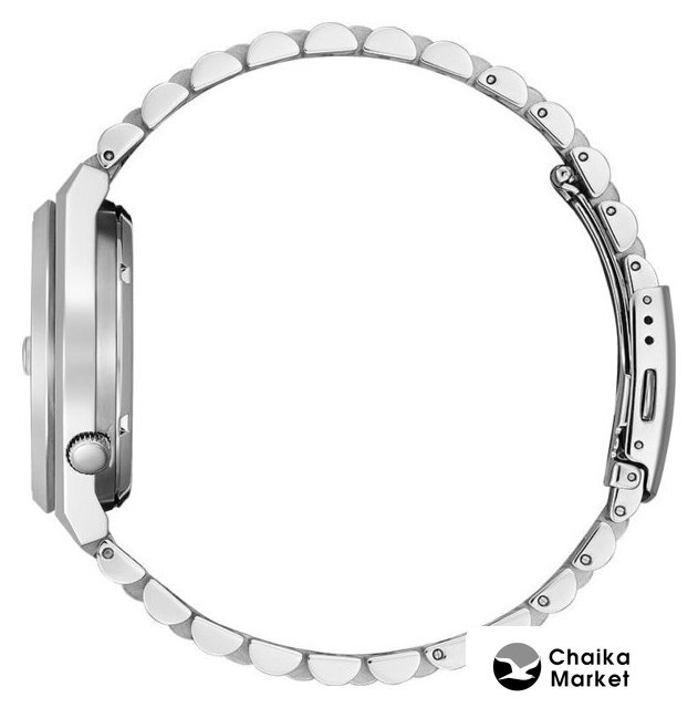 серебристый корпус, черный циферблат, серебристый/серый браслет, металлический ремешок