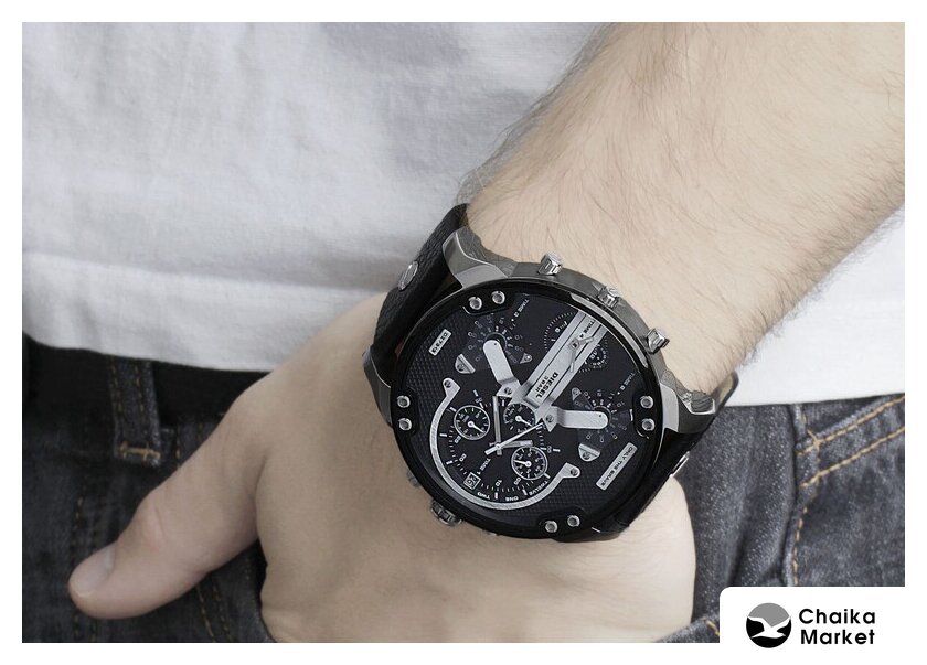 мужские, механизм кварцевый, корпус: нержавеющая сталь, 42 мм, сапфировое стекло, 50 м, браслет кожаный
