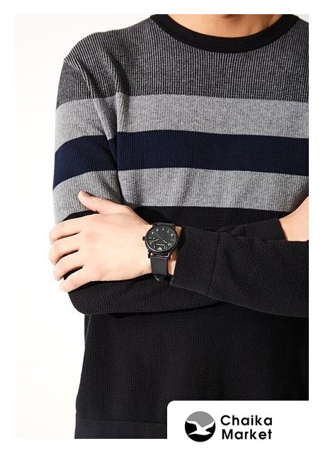 механизм кварцевый, корпус: нержавеющая сталь, 44 мм, минеральное стекло, 50 м, браслет кожаный