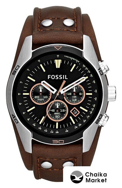 механизм кварцевый, корпус: сталь с покрытием, 51 мм, минеральное стекло, 100 м, браслет кожаный