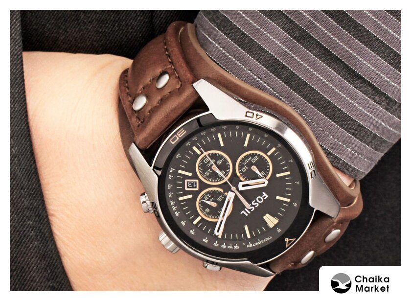 мужские, механизм кварцевый, корпус: нержавеющая сталь, 44 мм, минеральное стекло, браслет кожаный